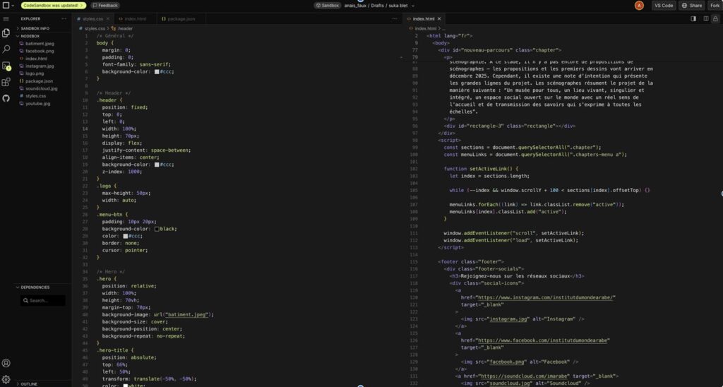 Le passage au prototype HTML a marqué une étape clé dans la concrétisation du projet. Il nous a permis de donner une première existence fonctionnelle au site, en traduisant la maquette en une structure interactive. Ce travail a servi à tester le comportement réel des éléments, la fluidité du scrolling et l’organisation des sections, tout en identifiant les premiers ajustements techniques nécessaires. Cette version brute, encore en construction, a constitué un socle solide pour aborder sereinement les phases de finalisation et d’optimisation du site.